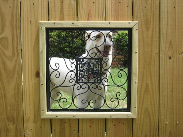 8. Проявите фантазию, добавьте в сад интересные фишки. Если ваша собака дружелюбна и не склонна облаивать всех проходящих мимо сада, сделайте ей небольшое окошко в заборе или воротах, через которое она сможет наблюдать за окружающим миром.